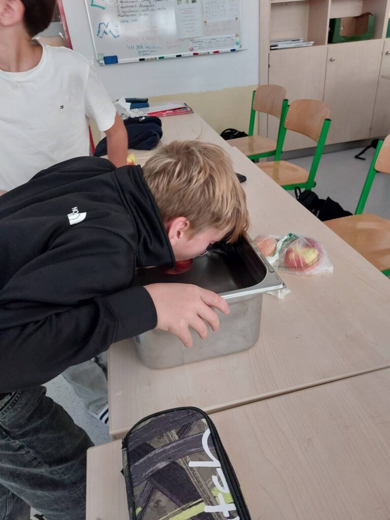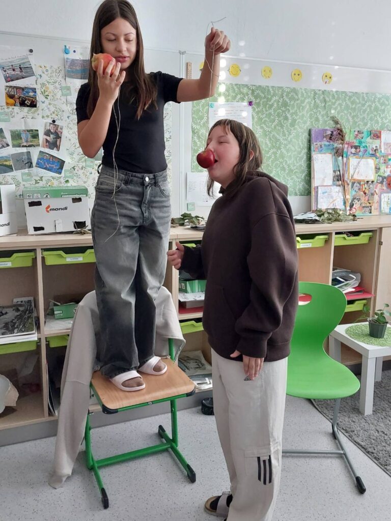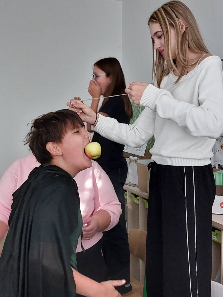 Vor den Herbstferien veranstaltete die 2. Klasse der MS-Illmitz in einer Englischstunde eine Halloweenparty. Wir haben uns über den Ursprung dieses Festes informiert und in Erfahrung gebracht, wie englischsprachige Länder Halloween feiern. Natürlich haben auch wir das eine oder andere Spiel ausprobiert – „Apple Bobbing“, „Apples on a String“ und „Fortune Telling“. Der „Skeleton Dance“ war ebenfalls sehr lustig.